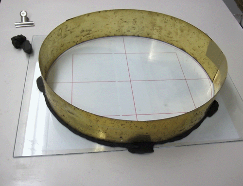 使用するのはダキワと呼んでいる真鍮板(厚さ0.3mm 幅15cm 長さ120cm程度)と、クリップ、油粘土およびガラス板です。