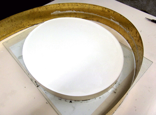 そのため、石膏取りに適した制作方法ということで石膏を使い、厚さ3cm程度の楕円形の平板を作ります。レリーフの土台=ベースです。