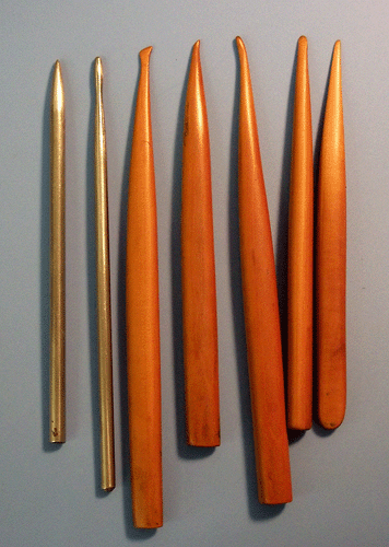 <粘土仕上げ用のヘラ> 粘土用なので多くはツゲの木を細工したものです。