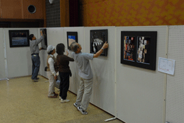 会場準備(パネルを組み立てています) |