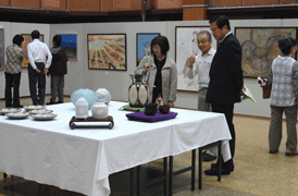 このPR展示では、絵画4点、工芸8点、書6点、写真5点の計23点と、本会の選りすぐりの会員作品を展示しています。