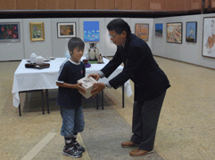 菊地会長が作られた「1000人来場者記念品」や第二部の中村和彦さんが制作したレリーフをはじめ陶器の小皿や絵ハガキなど会員特製の来場者プレゼントもたいへん好評でした。