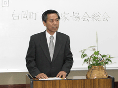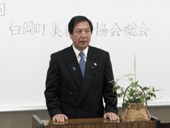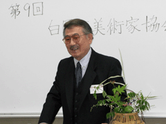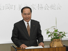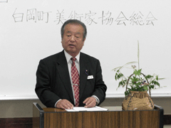 「芸術文化の充実なくして町の発展はあり得ない」と考えており、人を思いやる心、豊かな感性や創造力を引き出すことのできる芸術文化行政を堅持してまいりますので、日ごろの創作活動や本協会の事業を積極的に展開してくださり、芸術文化の充実をはじめとする町政の進展にご協力とご支援をよろしくお願いいたします。(小島卓 白岡町長 代読)
