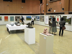 日本画1点、洋画2点、陶芸7点、書9点、写真5点が、白岡駅のコンコースを飾っています。