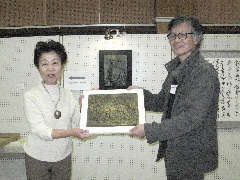 また、会員作品をプレゼントするクジ引きでは、ご家族皆さんでご来場くださった岸本貴代子さんが、見事、的中されました。