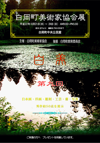 また、10月21日から開催いたします「第9回白岡町美術家協会展」の案内チラシが完成しました。