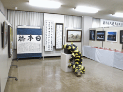 日本画部門の会員が篆刻、彫刻部門の会員が絵画と写真、写真部門の会員が絵画など部門が異なる作品や、日本画や洋画、書の会員が特大サイズの作品などの出品があり、ご来場くださる皆さんの目をひきつけています。