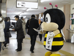 埼玉まなびぃのキャラクター「まなびぃ」も駆けつけ、チラシ配りを手伝ってくれました。